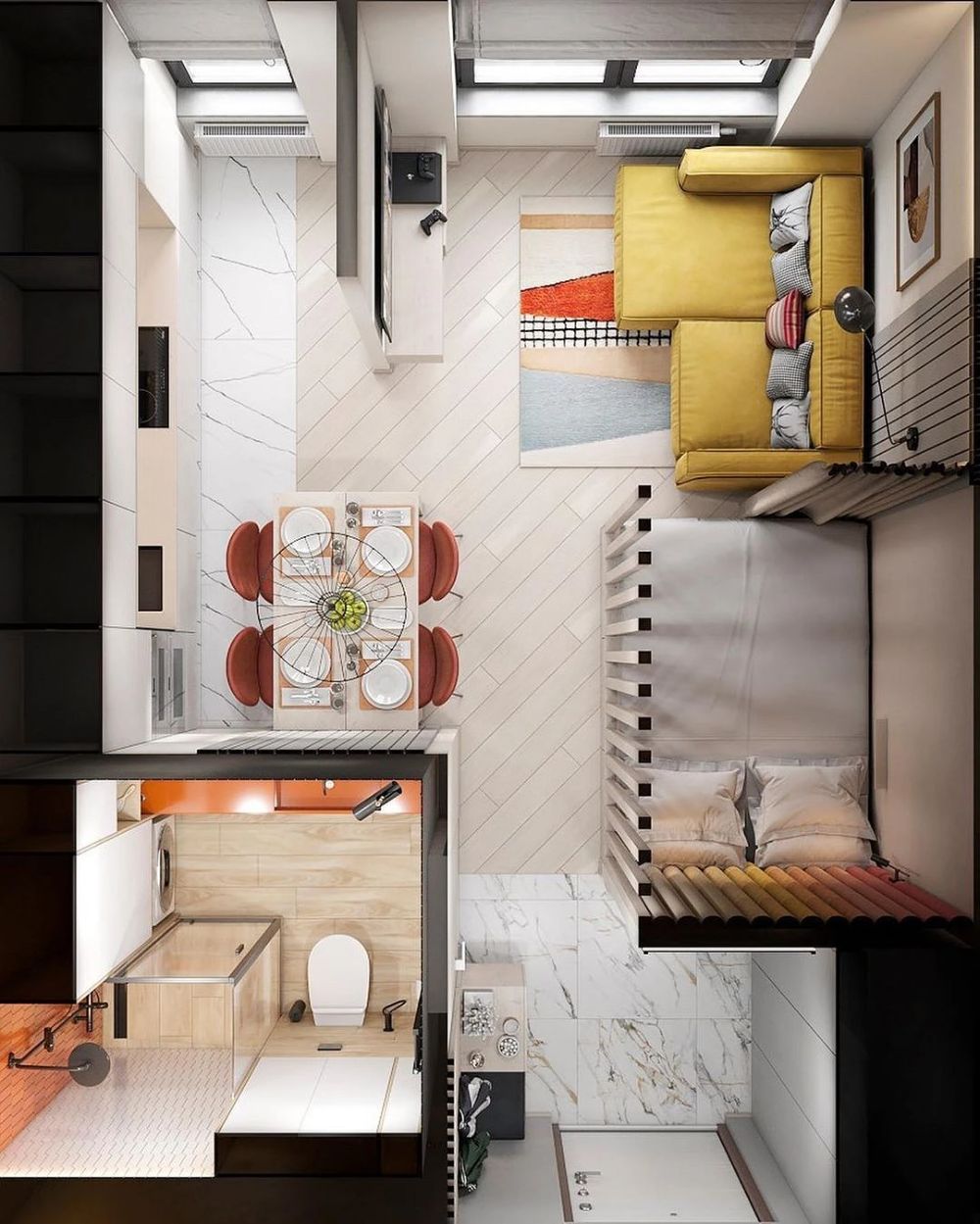 Это один из самых востребованных форматов на рынке недвижимости. Компактные и бюджетные — они идеально вписываются в современный ритм жизни. ГЛАВНОЕ — грамотно продумать каждый сантиметр. И этим мы как раз и занимаемся! При правильной эргономике студия становится удивительно уютной и стильной.