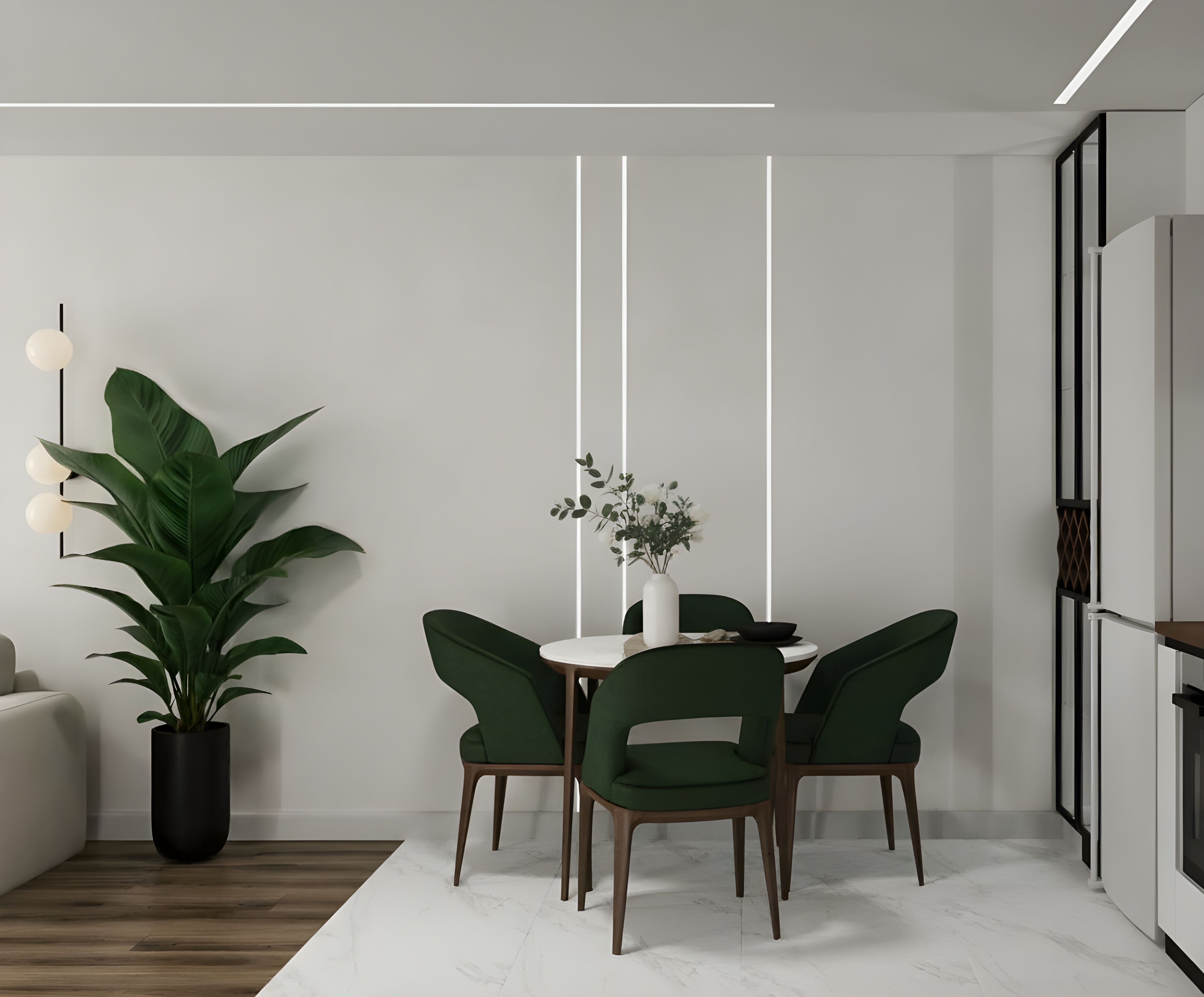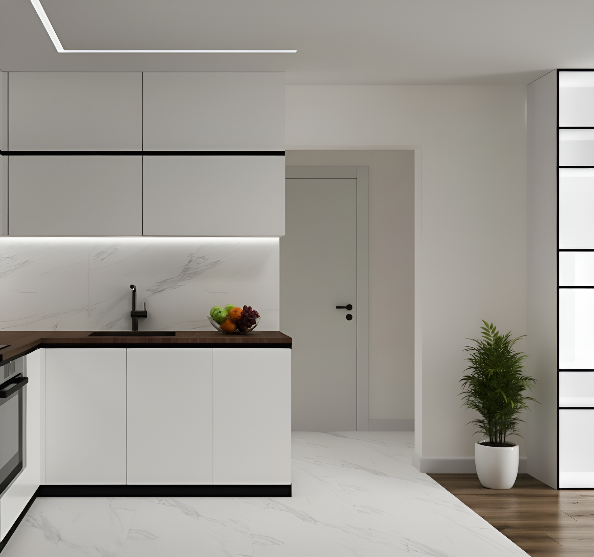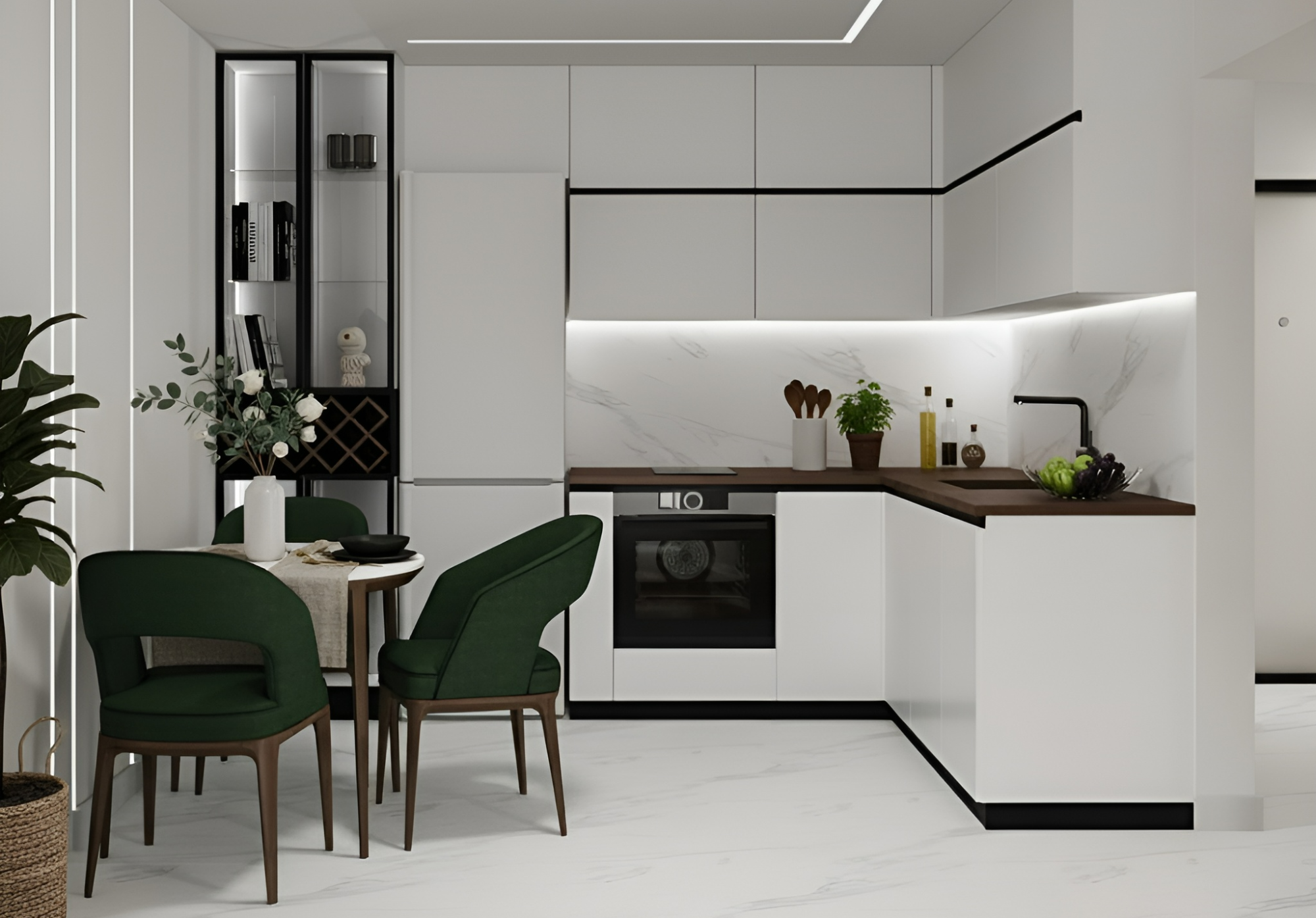- Кухня со стеклянным пеналом