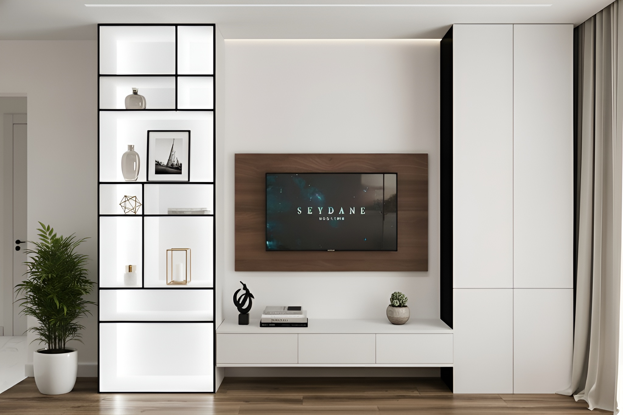 - Шкаф для книг в зоне гостиной